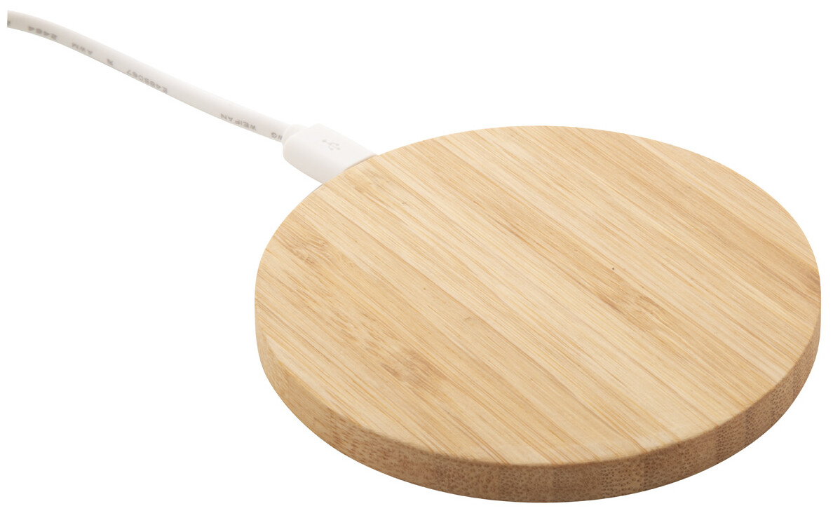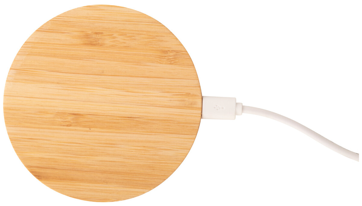 Bezdrátová nabíječka (5W) s bambusem. Vč. USB nabíjecího kabelu.