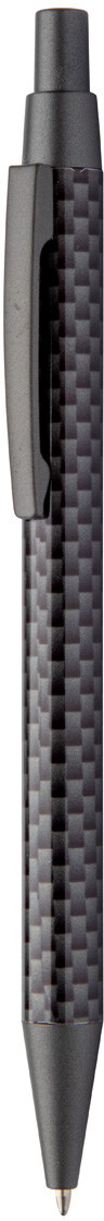 Kovové kuličkové pero s karbonovým vzorem na těle, v černém papírovém pouzdře, s modrou náplní.