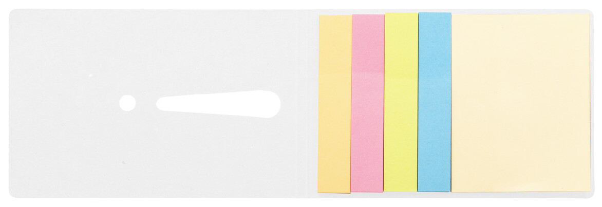 Samolepící bloček s 25 velkými a 100 malými samolepícími lístky (ve 4 různých barvách). S výřezem vykřičníku na deskách.