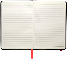 Texturovaný blok A5, potažený PU kůží se záložkou, gumičkou a držákem pera. 96 linkovaných listů.