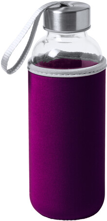 Skleněná láhev s popruhem na uzávěru a barevným neoprenovým krytem. 420 ml. Nevhodné pro sycené nápoje.