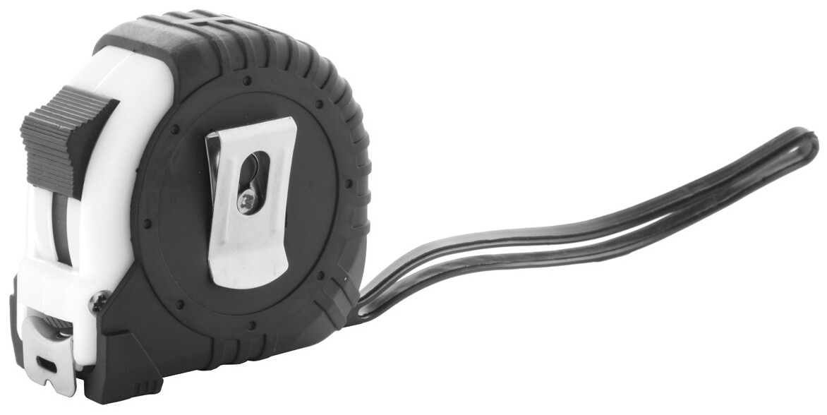 Plastový metr s aretací, kovovým klipem a šňůrkou na ruku, 5m.