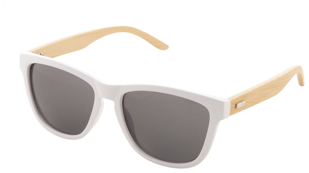 Sluneční brýle s barevnými plastovými obroučkami a bambusovými nožičkami. S ochranou UV 400.