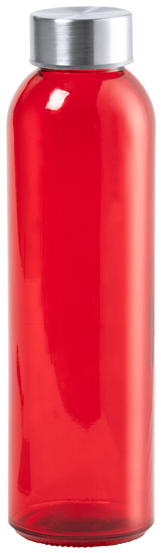 Průhledná skleněná láhev s uzávěrem z nerezové oceli, 500 ml. V dárkovém balení. Nevhodné pro sycené nápoje.