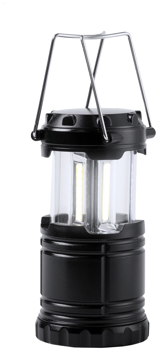 Přenosná kempingová lampa s kovovými uchy a 30 LED diodami ve 3 COB světlech. Dodáváno bez 3 AAA baterií. V dárkové krabičce.