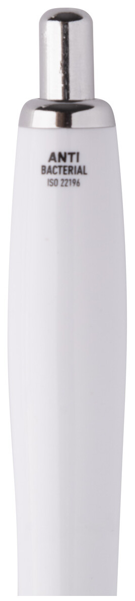 Plastové kuličkové pero s antibakteriální úpravou na těle a chromovými částmi. Obsahuje přísadu nano stříbra, které zabraňuje růstu bakterií na těle pera. Se stiskacím mechanismem a modrou náplní. V souladu s ISO 22196: 2011.
