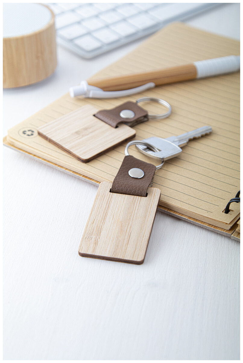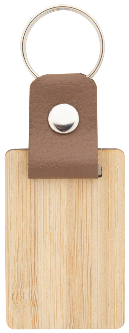 Přívěšek na klíče z bambusu a PU kůže s kovovým kroužkem.