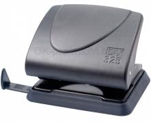 Děrovačka s příložníkem, vrchní část z umělé hmoty, spodní část kovová. Kapacita 25 listů, rozteč 80 mm, průměr otvoru 5,5 mm. Barevné provedení: černé.
