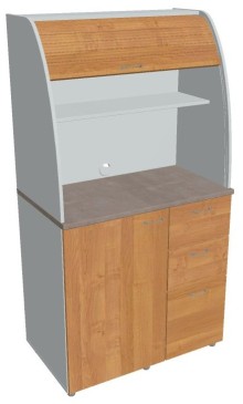 Dvě police ve vrchní části kuchyňky poskytují dostatečnou kapacitu pro vaše skleničky, hrnky či talíře. Na pracovní desku můžete umístit např. kávovar a kabelovou průchodkou v zadní části vyvedete přívodní kabel z prostoru kuchyňky.