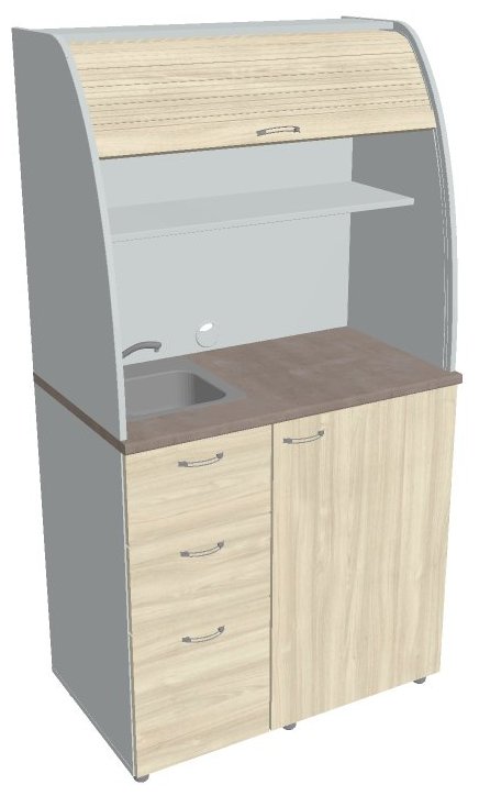V provedení se dřezem je hloubka dvou vrchních zásuvek zkrácena právě z důvodu umístění dřezu.