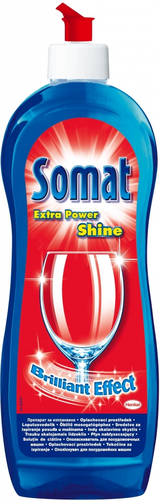 Somat oplachovač vytváří na nádobí křišťálově jasný lesk. Navíc odstraňuje zbytky, které mohou v myčce zůstat během mycího cyklu. Přináší vysoký lesk beze skvrn a vápenatých usazenin. Je speciálně vyvinutý pro ochranu skleněného nádobí, kterému dodává oslňující lesk. Napomáhá rychlejšímu schnutí nádobí. Změkčuje vodu, aby stékala rovnoměrně, a zabraňuje usazování nečistot na již umytém nádobí