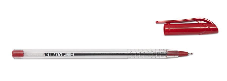 Jednorázové kuličkové pero s hrotem 0,7 mm a zvýšenou kapacitou náplně 1300 m. Píše hladce díky speciálnímu složení náplně. Průhledné tělo pro snadnou kontrolu množství v náplni. Vroubkovaný úchop umožní pevné držení v ruce. Barva náplně: červená.