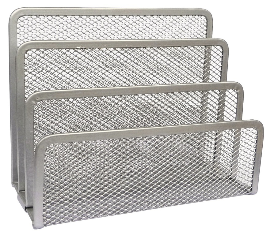 Stojan na dopisy a spisy v designu „drátěný program“. Barva: stříbrná.