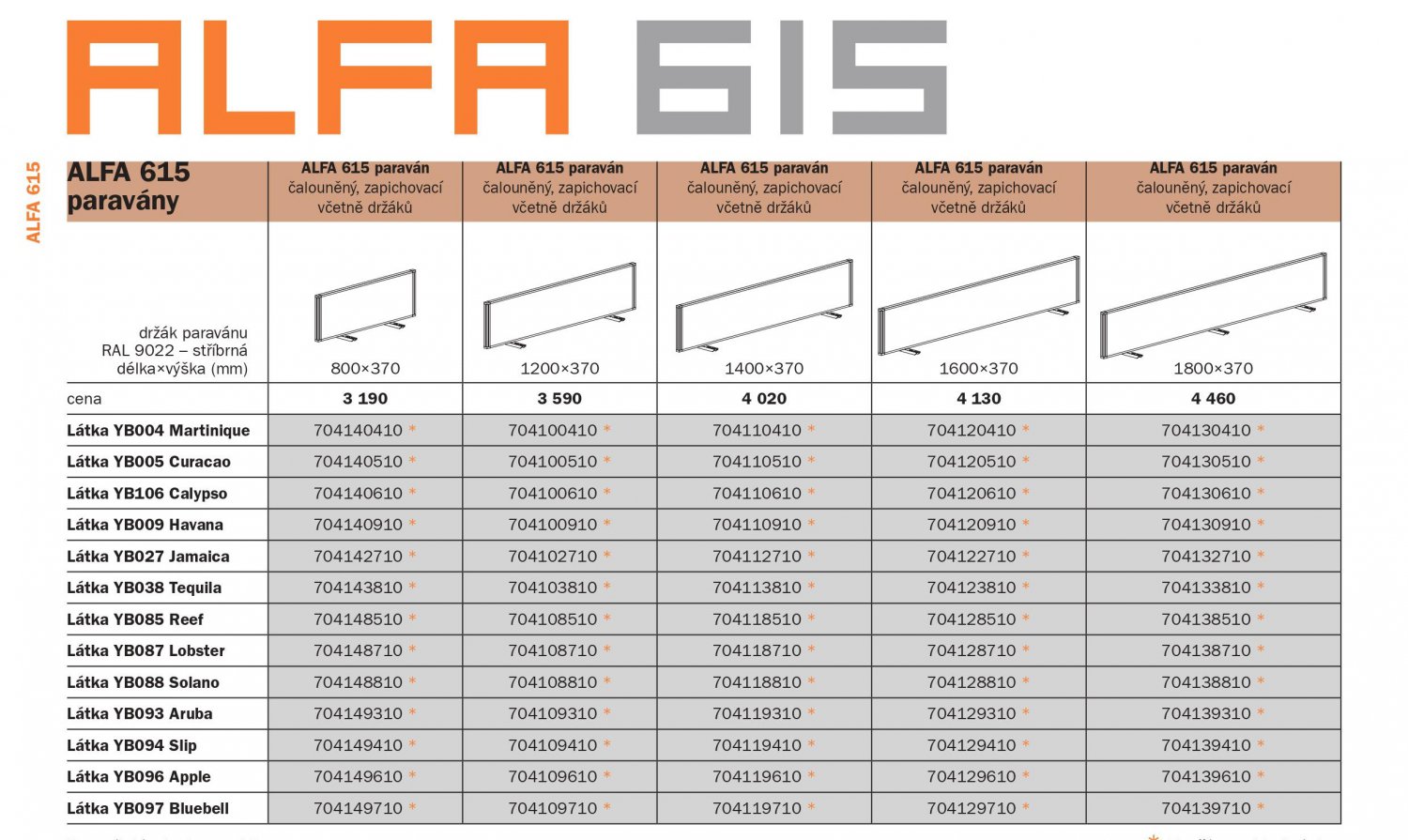 Paraván ALFA 615 má vnitřně ztužené hliníkové rámy o šířce 25 mm, povrchově upravené práškovou barvou (šedá RAL9022 nebo bílá RAL9010).