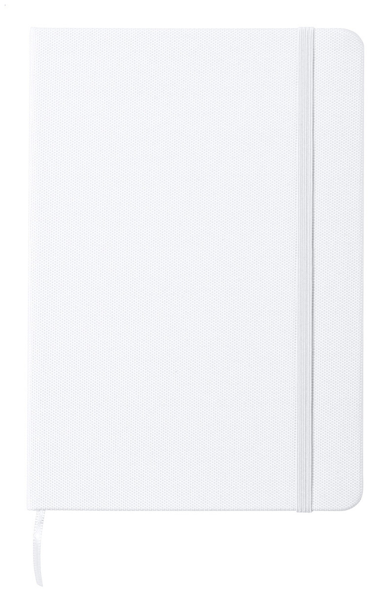RPET blok A5 potažený polyesterem s 80 linkovanými listy, záložkou a gumičkou.
