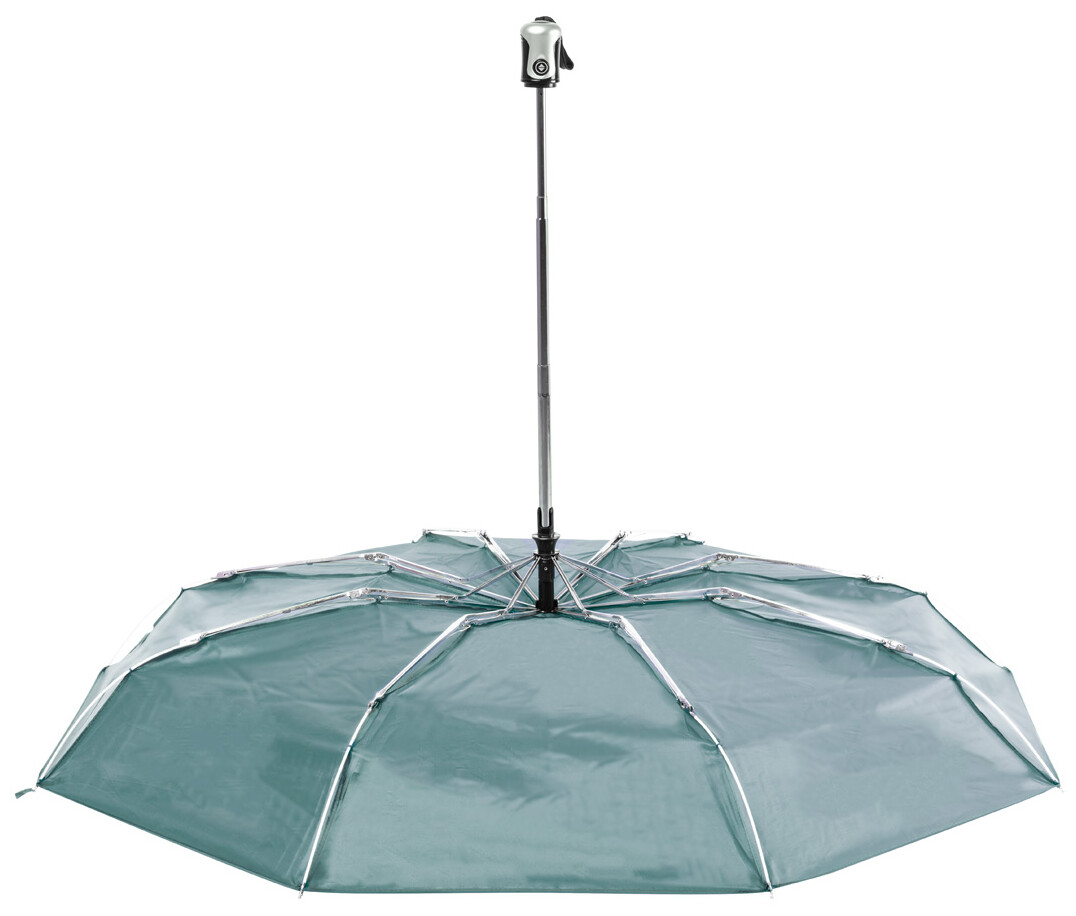 Plně automatický (otevírání/zavírání), větruodolný skládací deštník s 8 panely. S kovovou tyčkou, rámem z kovových/skelných vláken a odpovídajícím barevným pouzdrem a plastovou rukojetí. 190T polyester.