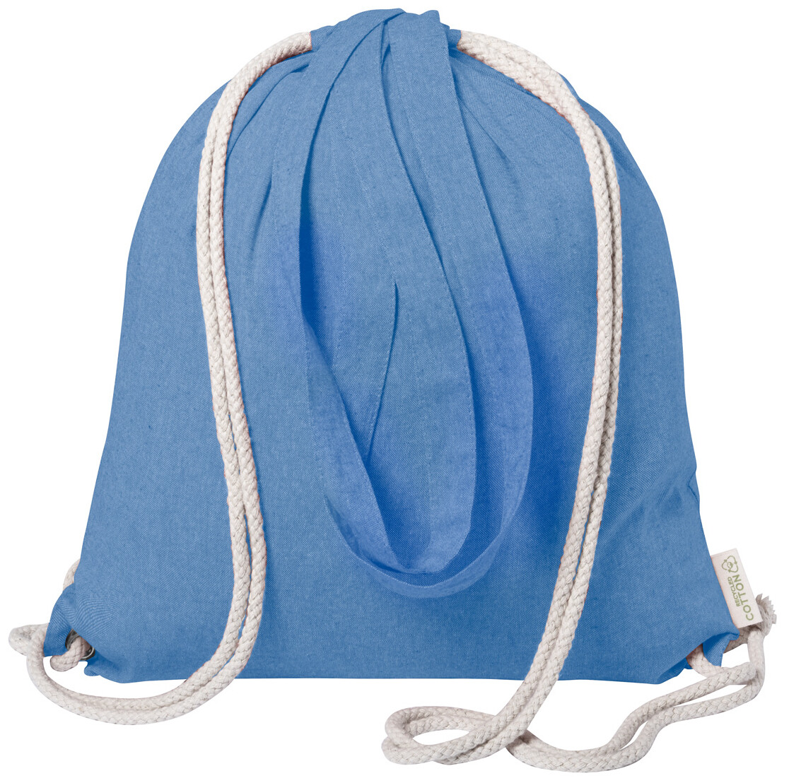 Vak na stahování šňůrkou z recyklované bavlny se silnými pletenými šňůrami a dlouhými uchy. Lze jej také použít jako nákupní tašku. 100% recyklovaná bavlna, 140 g/m2.