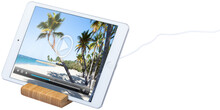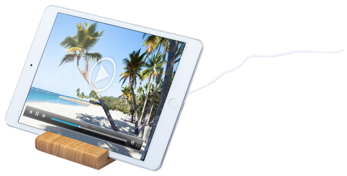 Bambusový stolní držák na mobil s vestavěnou bezdrátovou rychlonabíječkou (15W). Včetně USB nabíjecího kabelu.