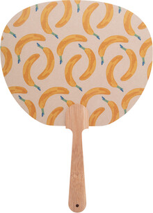 Vějíř vyrobený na zakázku s bambusovou rukojetí a kraftovým papírem. Cena zahrnuje digitální tisk na obou stranách, nezahrnuje tiskovou přípravu. Min. mn.: 100 ks.