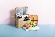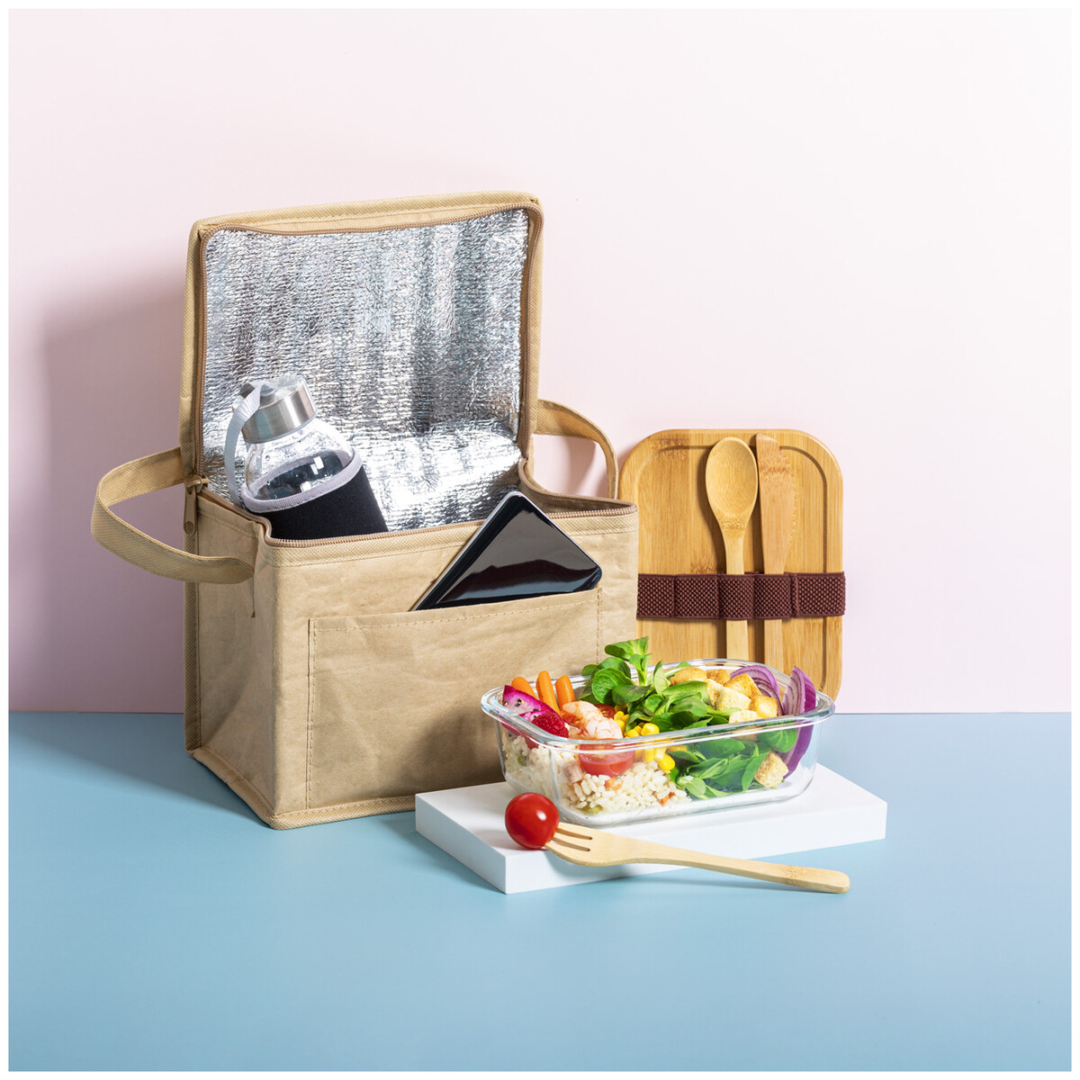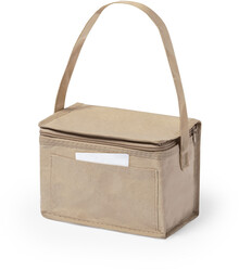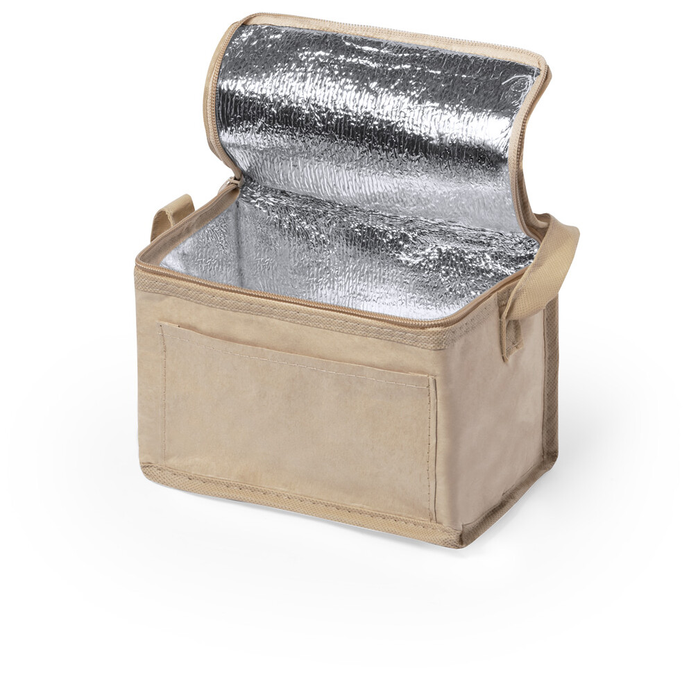 Chladící taška na zip z polaminovaného recyklovaného papíru s hliníkovou výplní, pro 6 ks plechovek 0,33 l. S přední kapsou ideální pro potisk.