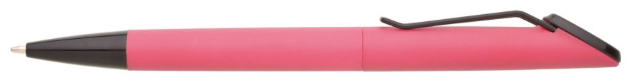 Plastová otočná propiska ARESTA v neonově růžové barvě s černou špičkou a černým kovovým klipem. Na držák klipu je možné umístit epoxy samolepku. Náplň velkoobsahová, modře píšící.
