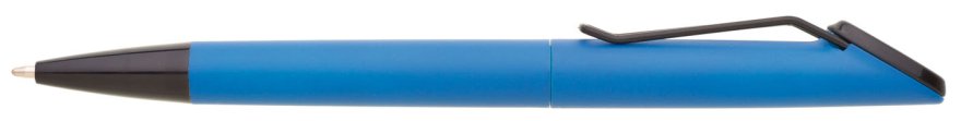 Plastová otočná propiska ARESTA v neonově modré barvě s černou špičkou a černým kovovým klipem. Na držák klipu je možné umístit epoxy samolepku. Náplň velkoobsahová, modře píšící.