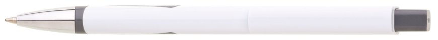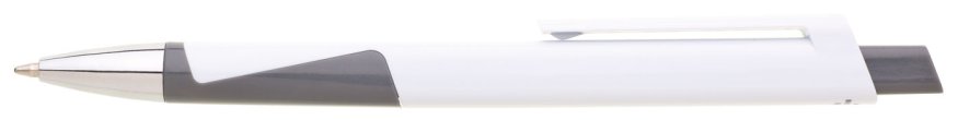 Plastová bílá propiska CARRE se čtvercovým profilem a šedými doplňky. Ideální na uv potisk. Náplň velkoobsahová, modře píšící.