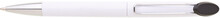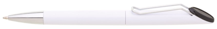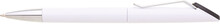 Plastová bílá otočná propiska VERENA s chromovou špičkou a chromovým klipem. Držák klipu je černý a je možné na něj umístit epoxy samolepku. Náplň velkoobsahová, modře píšící.