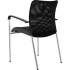 Moderní stohovatelná konferenční židle s područkami, se sedákem čalouněným v potahové látce Fill 9 (černá) a opěrákem opatřeným černou prodyšnou síťovinou.
