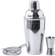 Nerezová koktejlová sada s 550 ml šejkrem, odměrkou a koktejlovým sítkem.