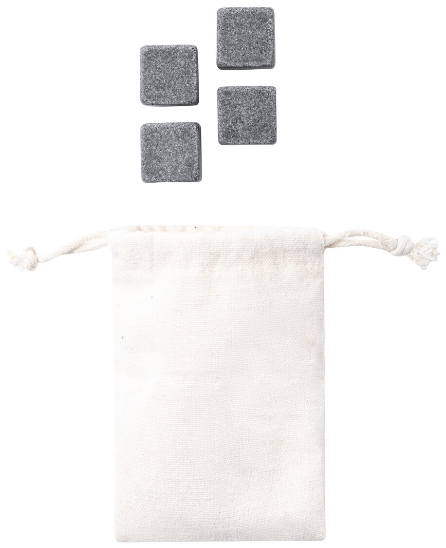 Sada 4 ks opakovaně použitelných chladících kamenných kostek v bavlněném sáčku.