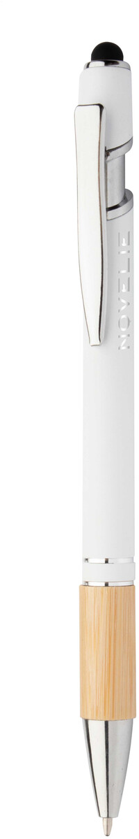 Hliníkové kuličkové a dotykové pero s bambusovým úchopem a pogumovaným povrchem. Se speciální vrstvou pro zrcadlové laserové gravírování. S modrou náplní.
