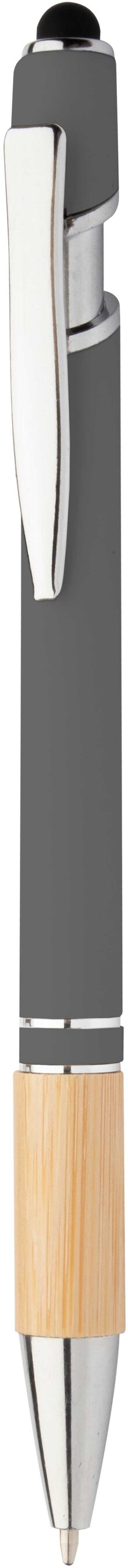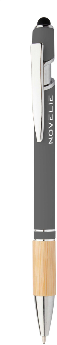 Hliníkové kuličkové a dotykové pero s bambusovým úchopem a pogumovaným povrchem. Se speciální vrstvou pro zrcadlové laserové gravírování. S modrou náplní.