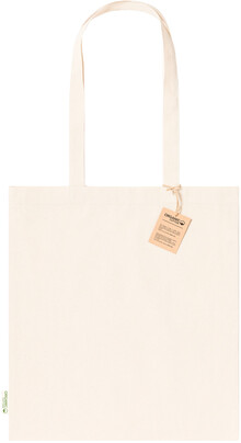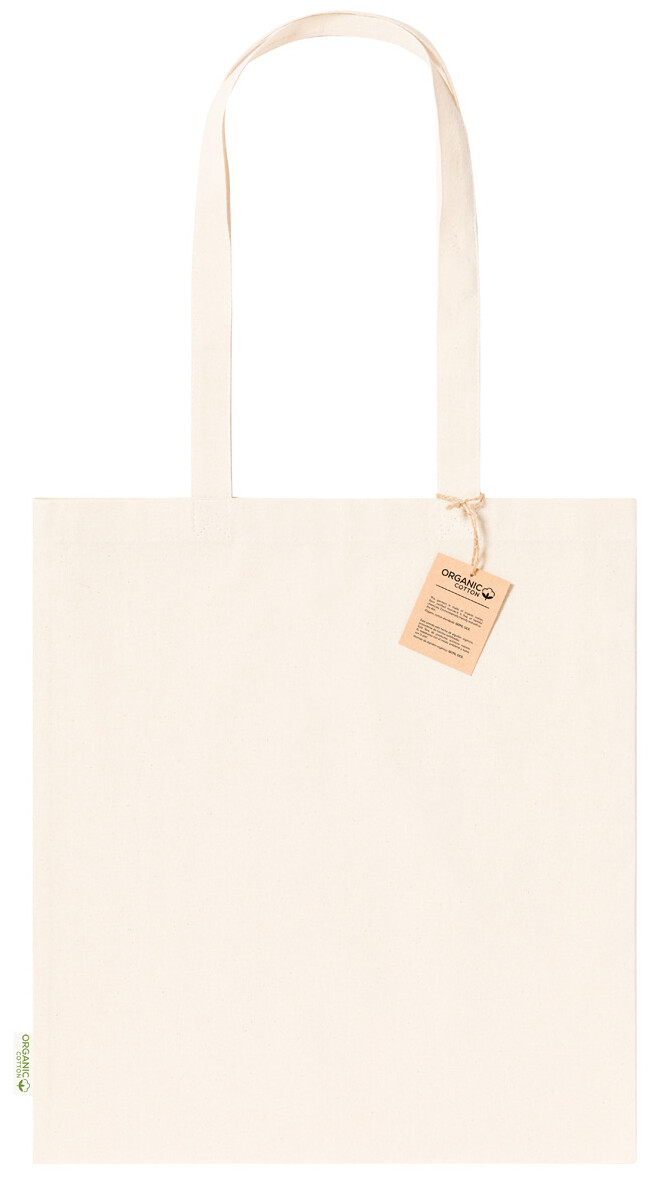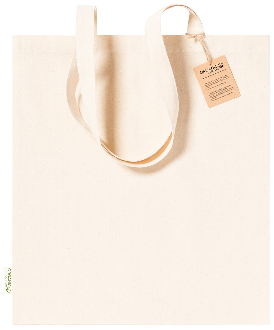 Opakovaně použitelná nákupní taška ze 100% organické bavlny s dlouhými uchy, 180 g/m2.