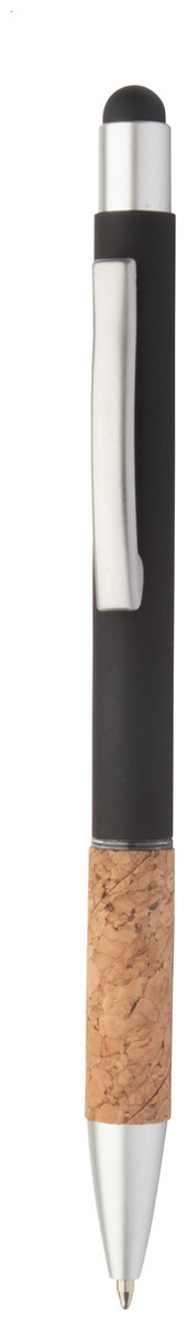 Hliníkové kuličkové a dotykové pero s úchopem z přírodního korku, matným povrchem těla a částí. S modrou náplní.