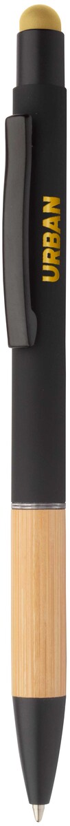 Hliníkové kuličkové a dotykové pero s bambusovým úchopem a pogumovaným povrchem. Se speciální vrstvou pro zrcadlové gravírování odpovídající barvě stylusu. S modrou náplní.