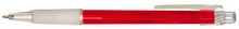 Kuličkové transparentní pero PROSTO. Má gumový úchop, tělo pera je červené. Klip a špička pera je průhledná.Náplň je X20, modře píšící.