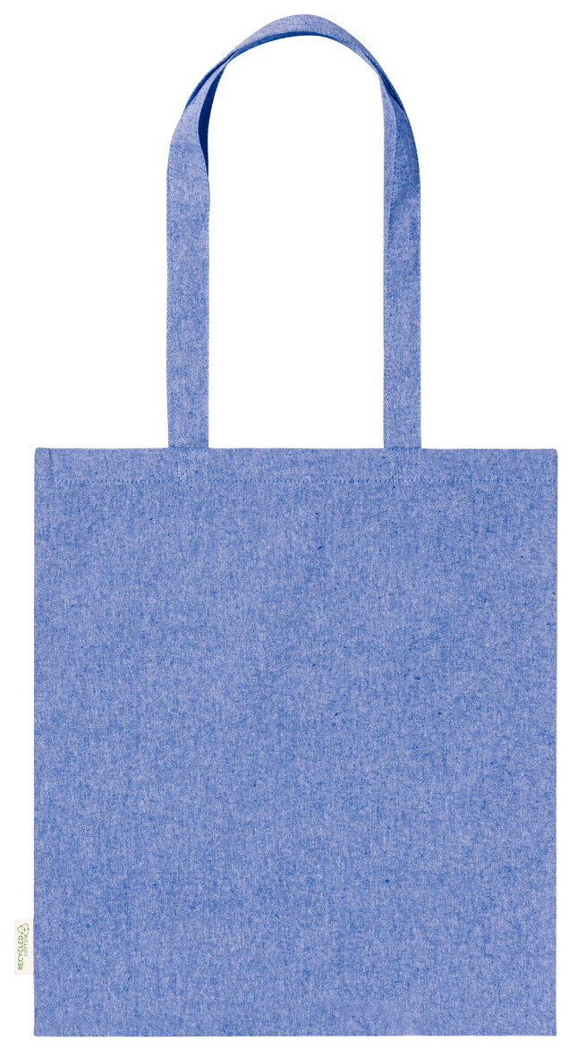 Opakovaně použitelná nákupní taška ze 100% recyklované bavlny s dlouhými uchy a výrazným štítkem z recyklované bavlny, 140 g/m2.