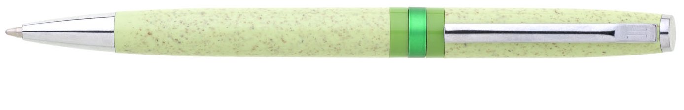 Ekologická varianta propisky vyrobená z plastu s podílem slámy. Propiska je otočná, zdobená barevnými kroužky v barvě těla. Náplň modře píšící.