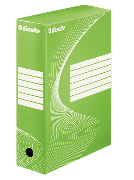 Archivační krabice jsou vhodné pro ukládání dokumentů do formátu A4. Dokumenty jsou vždy snadno přístupné a zároveň dobře chráněné. Otvor pro snadnou manipulaci i potisk pro popis na delší i kratší straně umožňují skladovat krabice ve svislé i vodorovné poloze. Pro výraznější odlišení je možné využít krabice v barevném provedení. Krabice je možné používat samostatně nebo v kombinaci s archivačními kontejnery. Kapacita krabice je až 2000 listů formátu A4 (pro 200 mm). Dodávány ve 4 provedeních s různou šířkou hřbetu, šíře hřbetu 10 cm. Balení 25 ks. Barva: zelená.