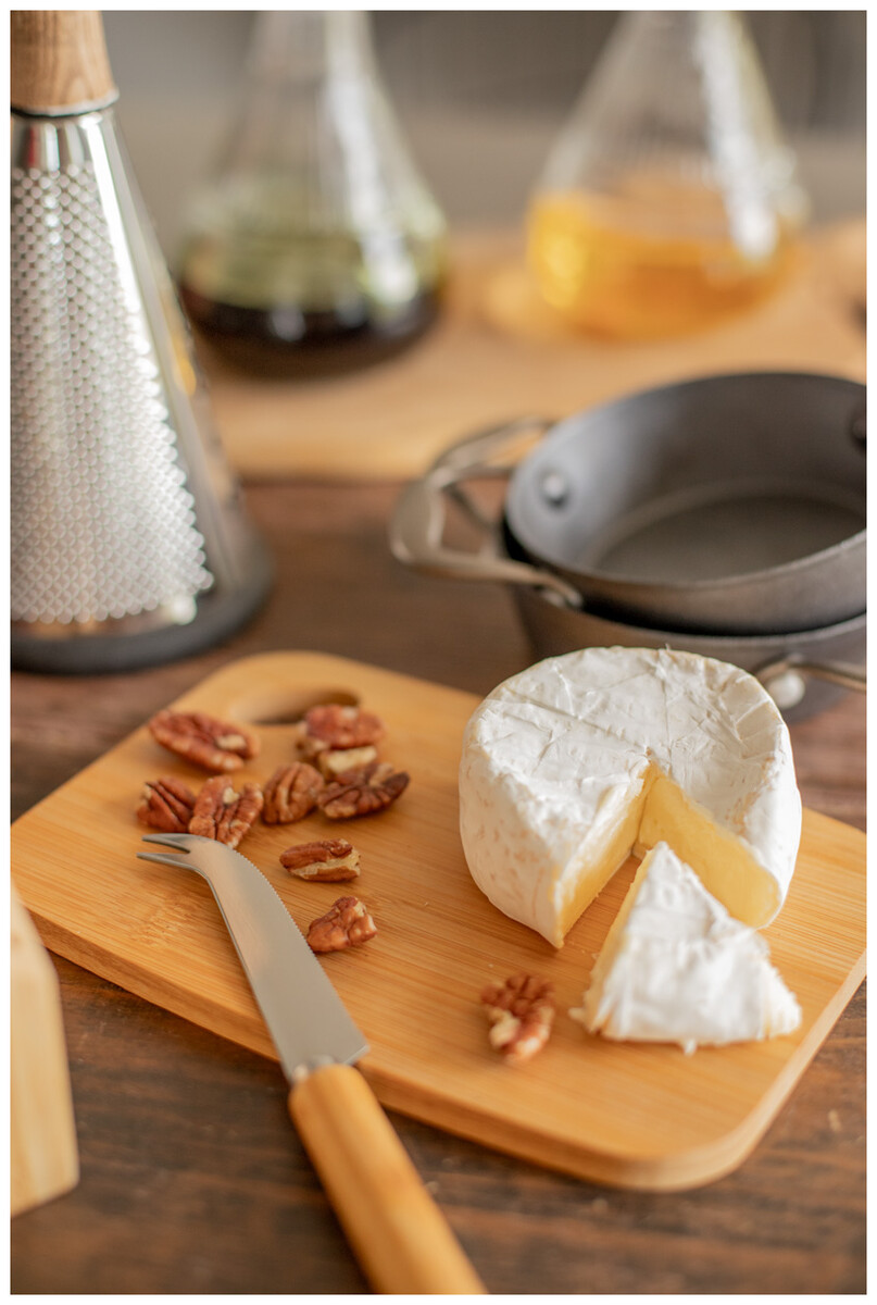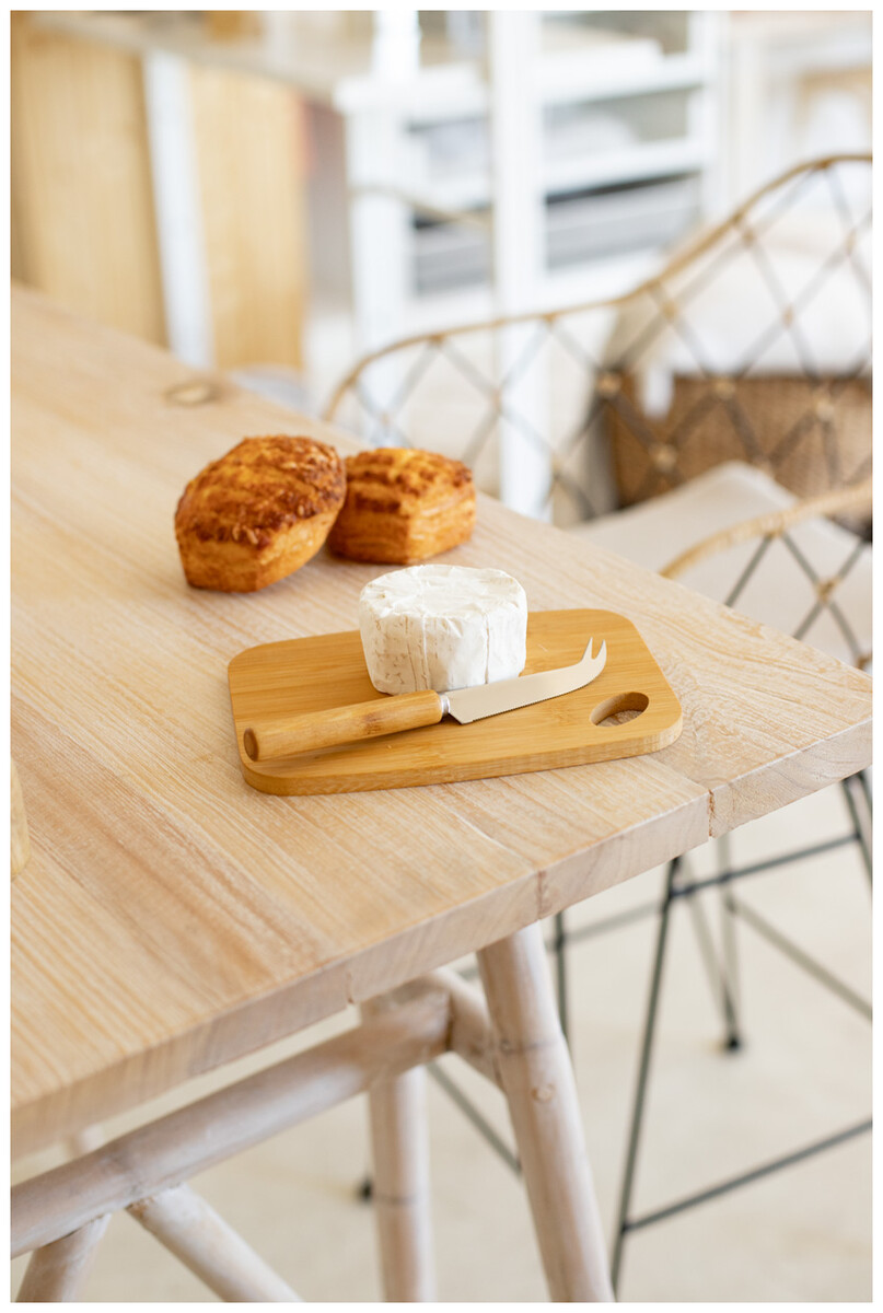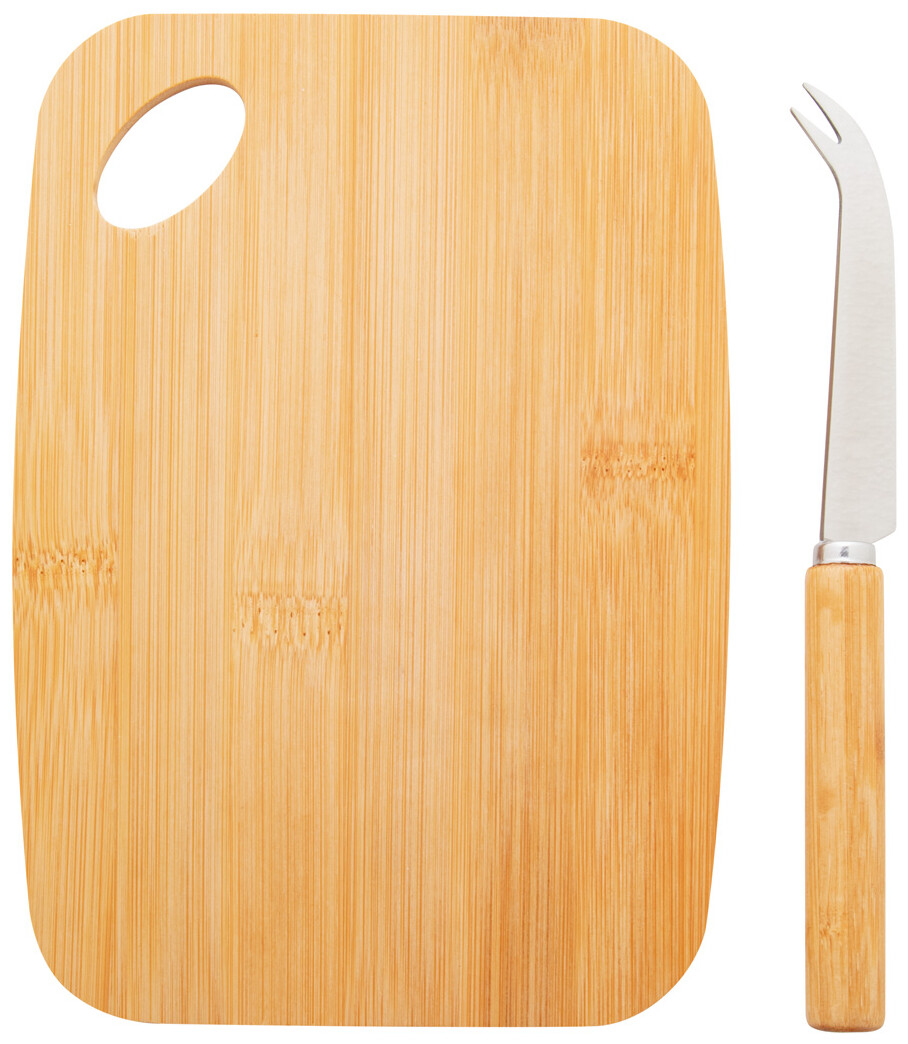Sada na sýr s nožem z nerezové oceli a bambusovým prkénkem. V kraftové papírové krabici.