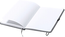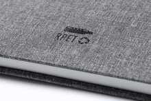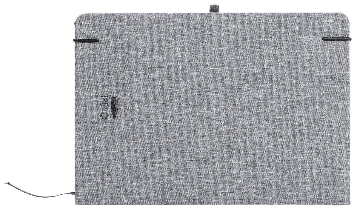 Zápisník potažený polyesterem 600D RPET se 100 linkovanými listy, záložkou a gumičkou. Velikost A5.