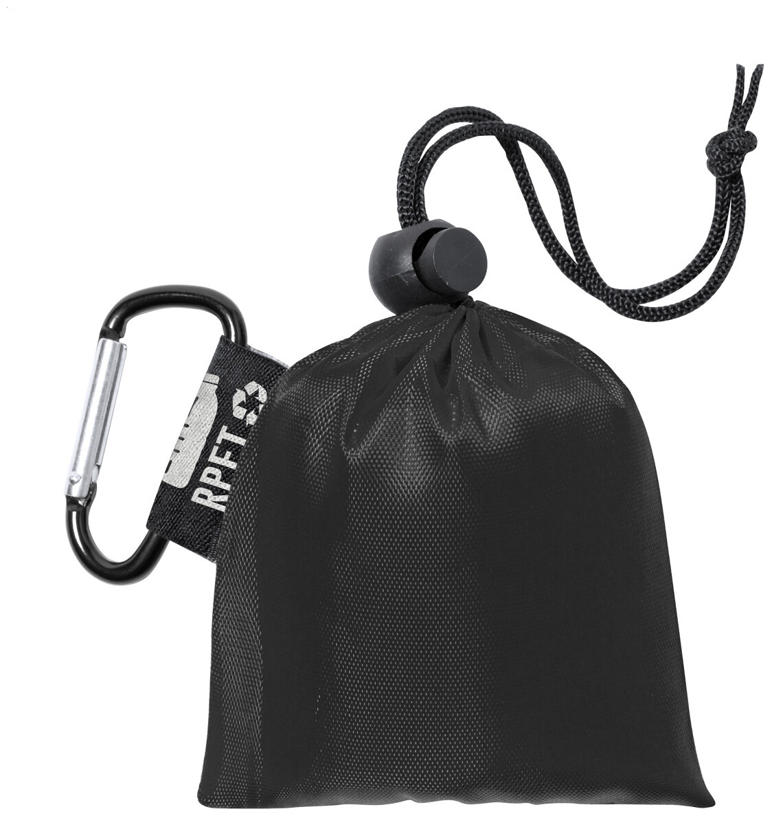 Transparentní LDPE pončo v jedné velikosti pro dospělé. V RPET polyesterovém pouzdru s výrazným štítkem RPET a hliníkovou karabinou.