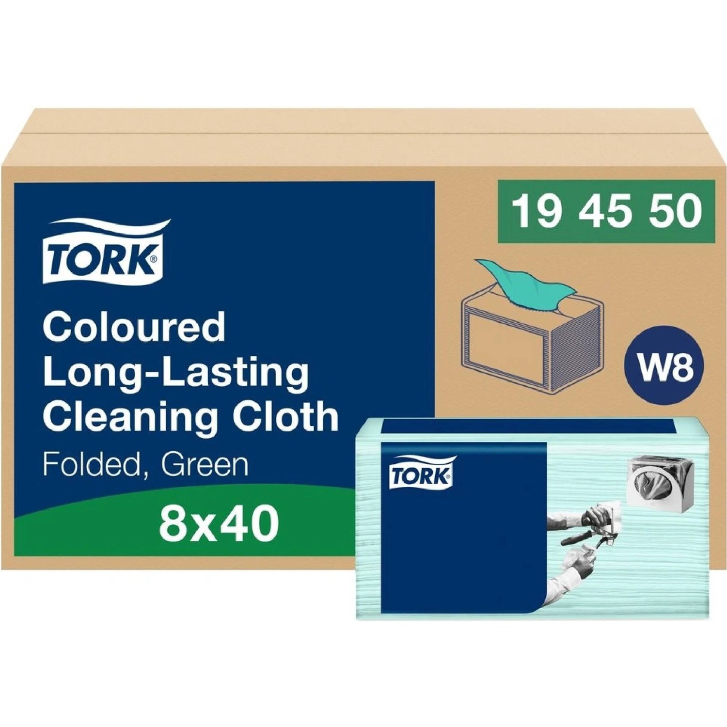 Čistící utěrky Tork 194550, barevný program, 1 vrstvé, zelené, systém W8