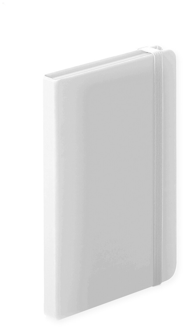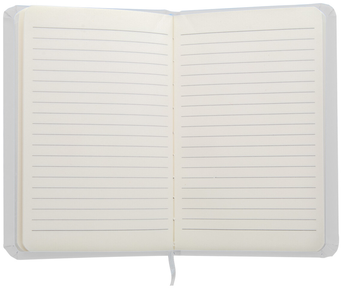 Blok s deskami z PU kůže, se 100 linkovanými listy, záložkou a gumičkou. Velikost A6.