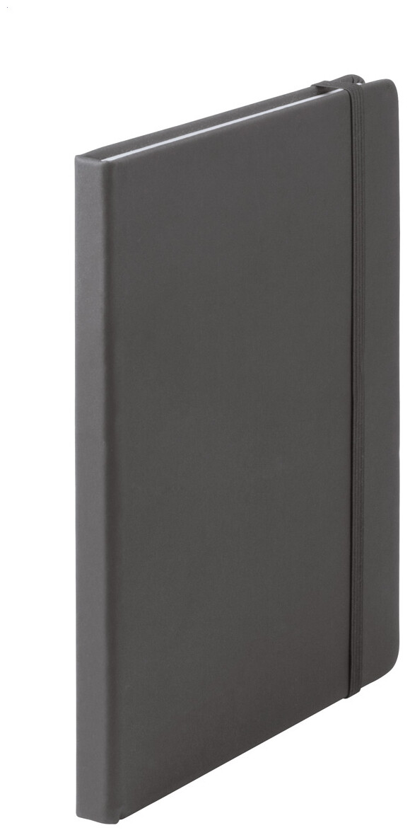 Poznámkový blok se 100 listy, záložkou a gumičkou.