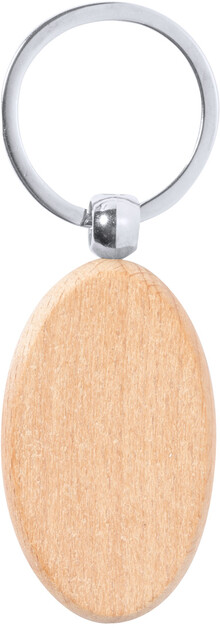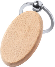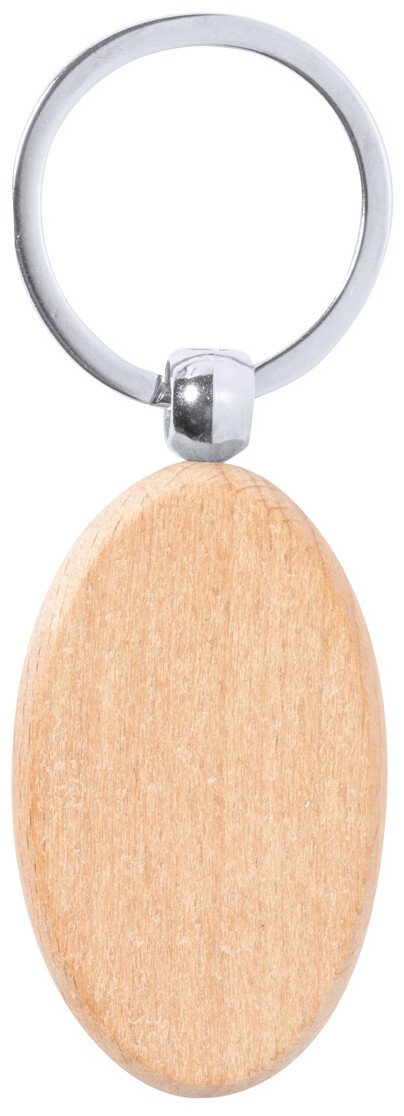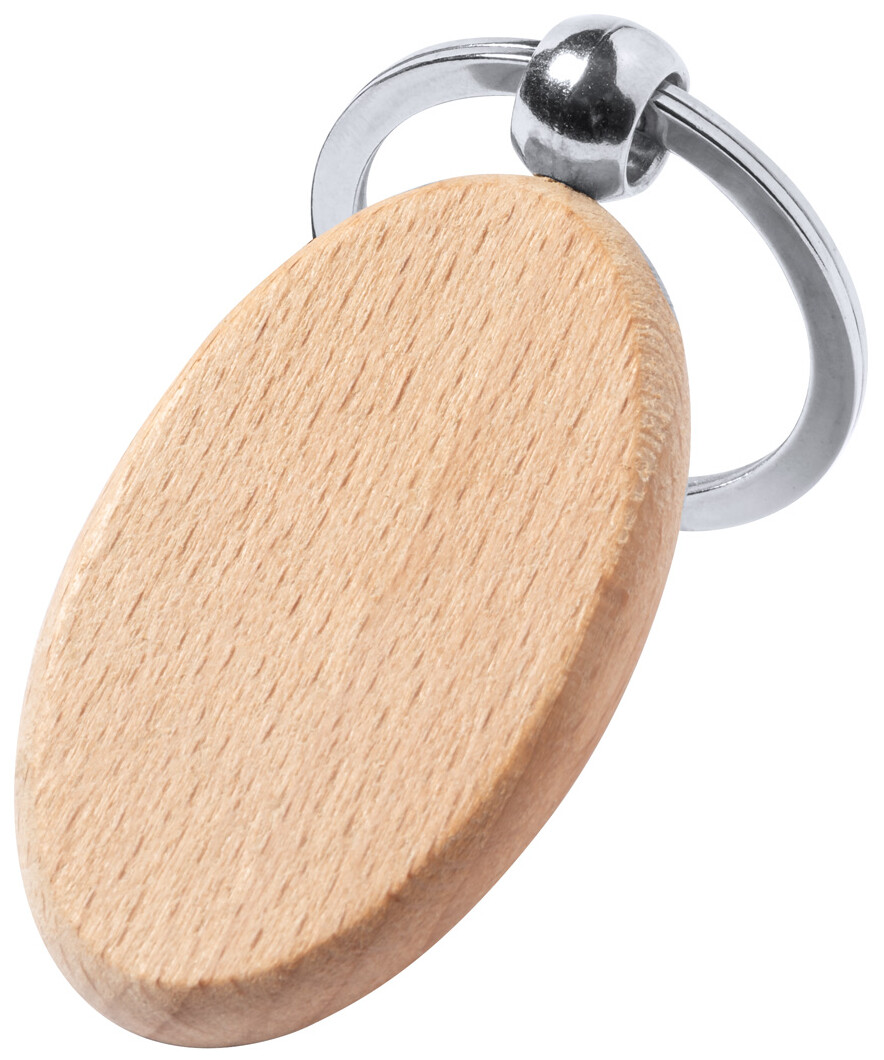 Přívěsek na klíče z přírodního bukového dřeva s kovovým kroužkem.