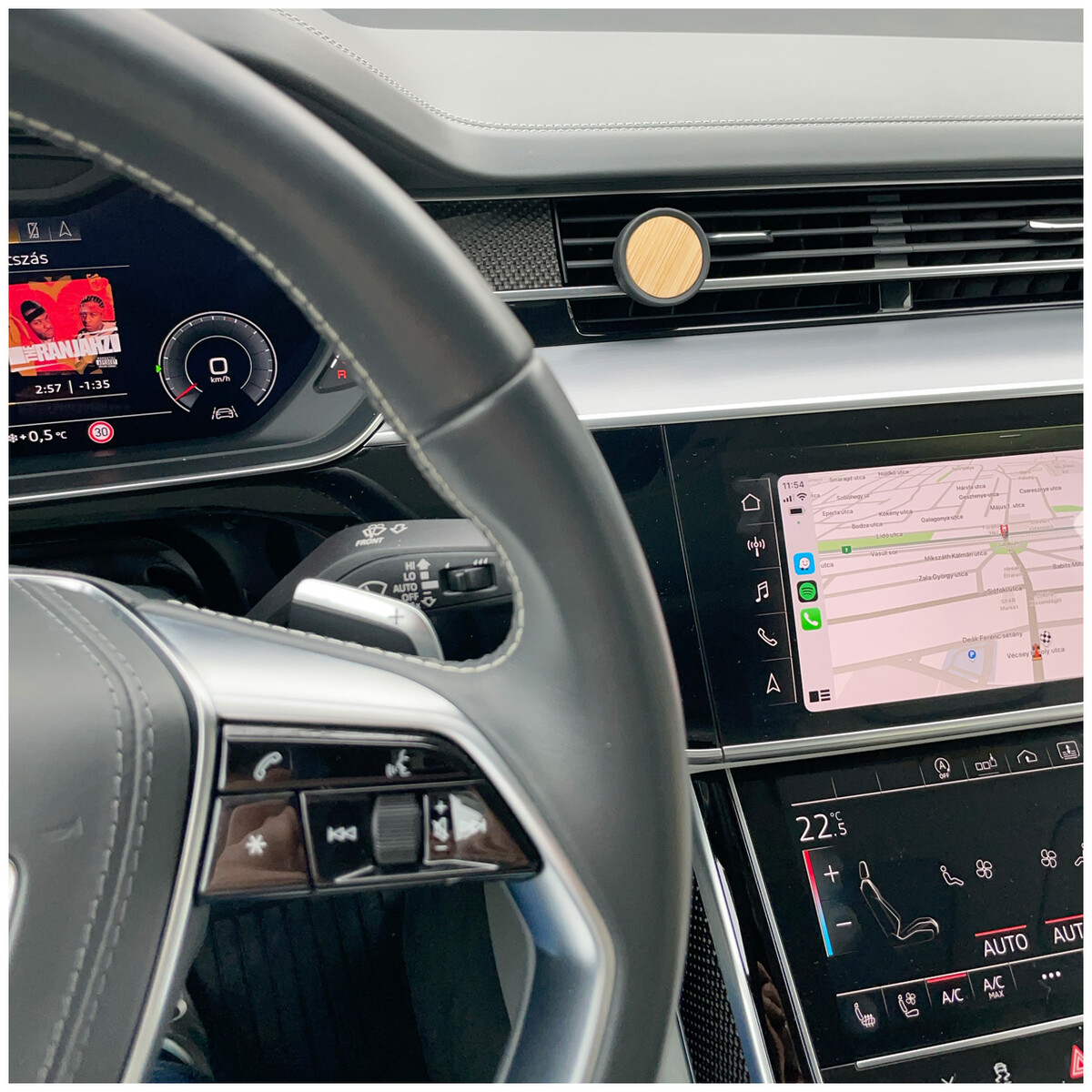 Silikonový osvěžovač vzduchu do auta s bambusovou přední částí a upevněním do větracího otvoru, citronová vůně.