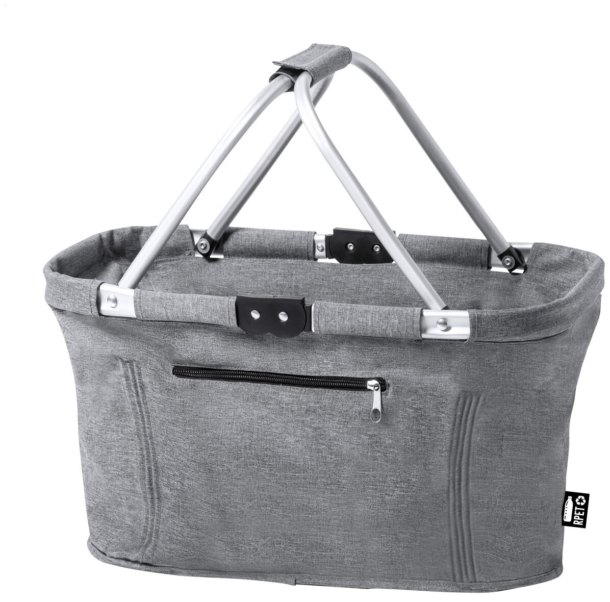 Skládací piknikový koš z 600D RPET polyesteru s hliníkovým rámem a přední kapsou na zip. S výrazným štítkem RPET.