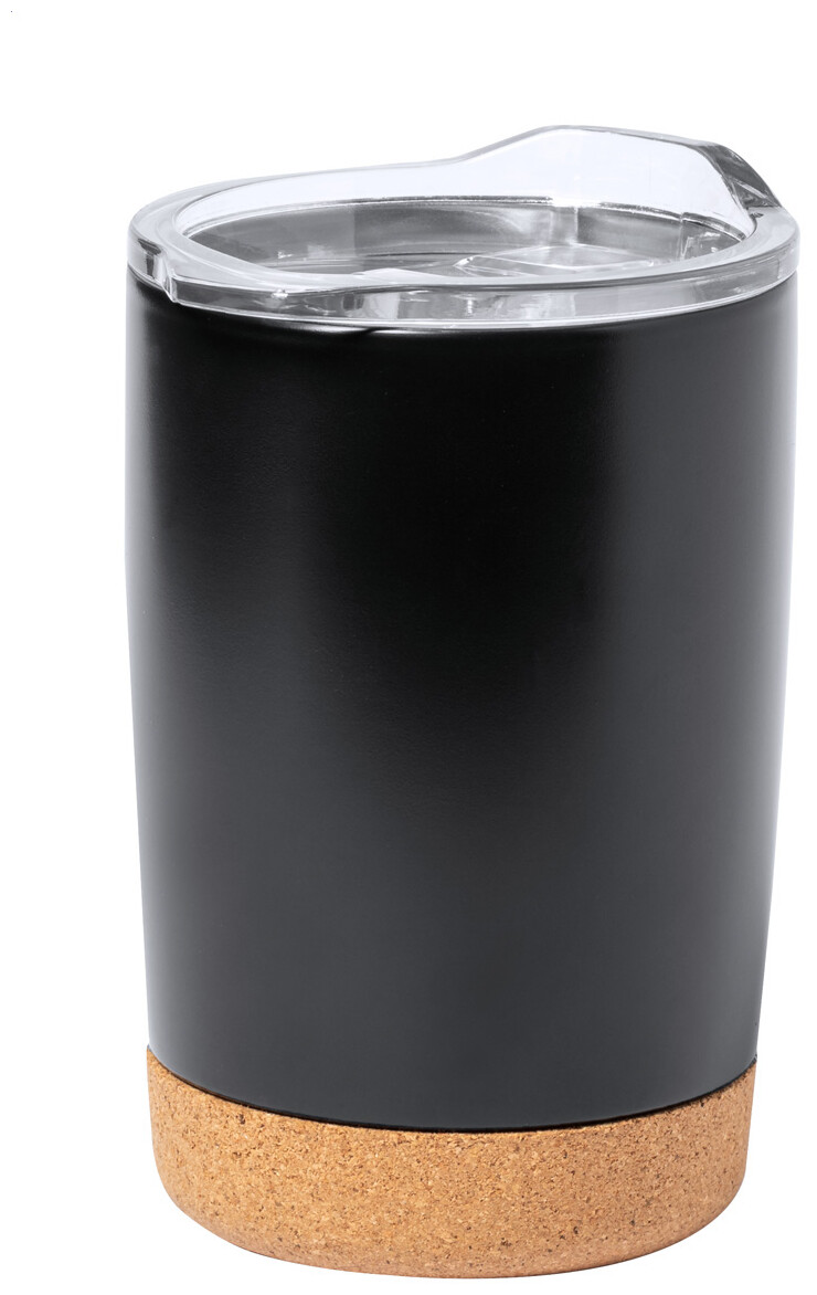 Dvoustěnný termo hrnek z nerezové oceli s průhledným víčkem na pití a korkovým dnem, 380 ml. V dárkové krabičce.